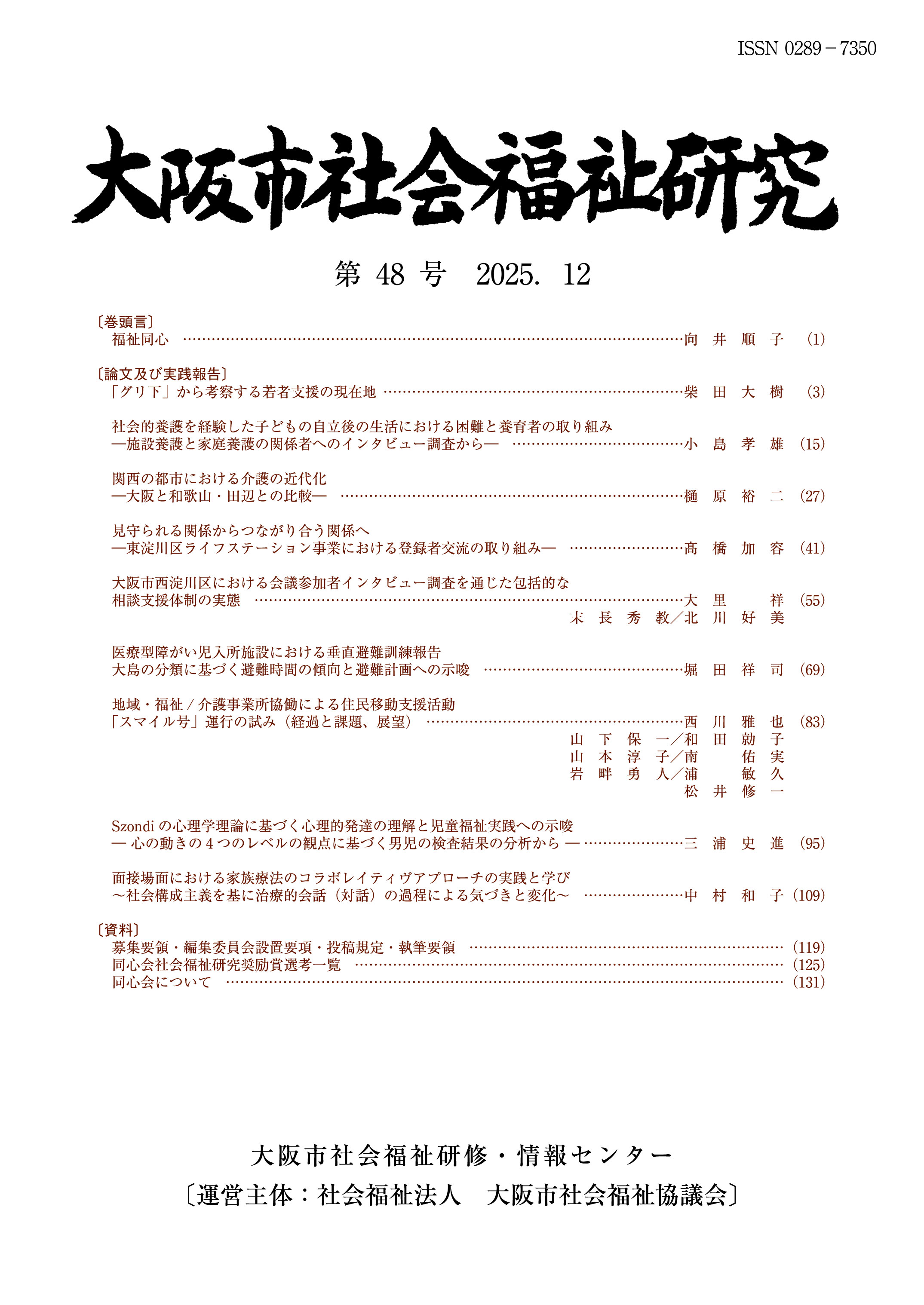 2004(平成16)年から2008(平成20)年の5年間にわたり、大阪市社会福祉研究会と大阪市社会福祉研修・情報センターの共催により実施した「社会福祉の市民講座」で発表された大阪の福祉に取り組んだ先達の活動を冊子としてまとめました。